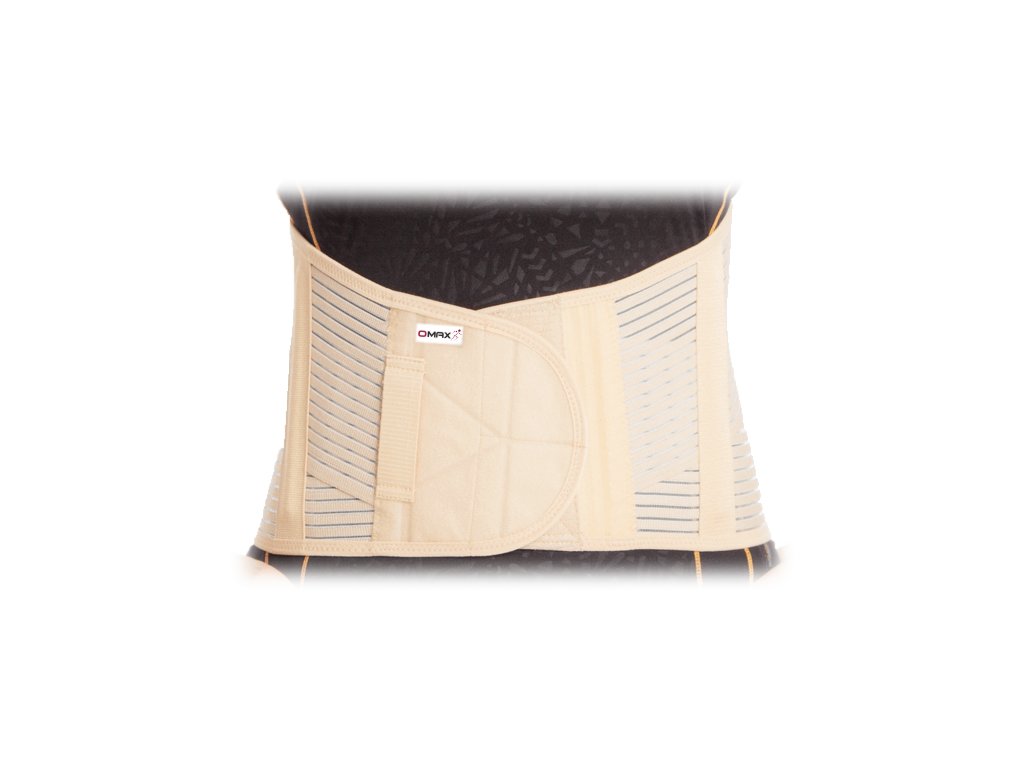 Bederno-sakrálny pás Lumbomax je zdravotnícka pomôcka vyrobená z elastickej kompresnej tkaniny, ktorá podporuje bedrovo-sakrálny úsek chrbtice. Pás je vybavený suchým zipsom, podperami odľahčujúcimi chrbticou a posilňovacími pásmi, ktoré spoločne znižujú bolesť a zlepšujú pohyblivosť pacienta. Vzdušná kompresná tkanina vďaka systému kanálikov umožňuje pokožke voľne dýchať a odvádzať vlhkosť. Výška pásu 26 cm zaisťuje dostatočnú stabilizáciu bedrovo-sakrálnej chrbtice.