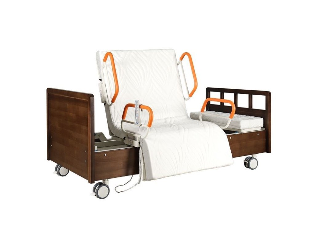 Rozšírené lôžko s funkciou vertikalizácie umožňuje jednoduché otočenie pacienta o 90° do polohy kresla, čím výrazne uľahčuje vstávanie, obliekanie či kŕmenie.