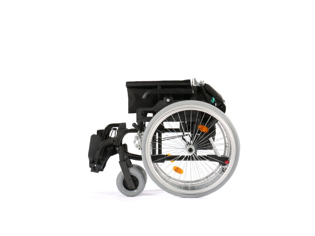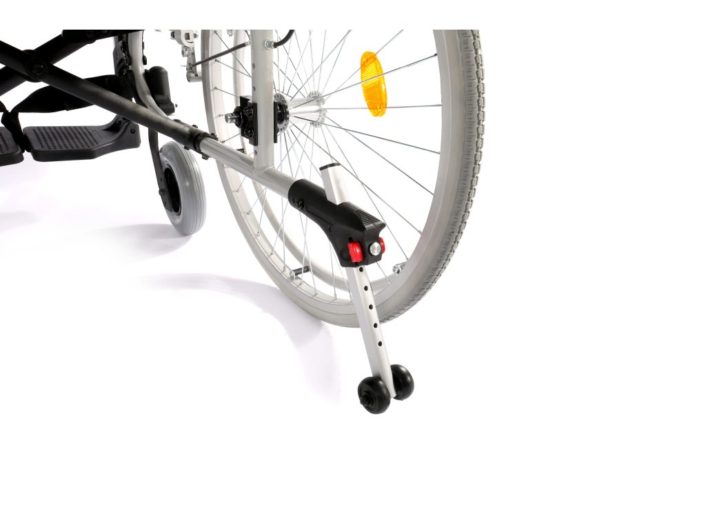 Vďaka napoly sklopnému operadlu a ergonomickou rukoväťou je vozík komfortný pre užívateľov i opatrovateľov. Bedrový pás, penový vankúš a suchý zips spájajúci čalúnenie sedadla s operadlom zvyšujú pohodlie. Silné kovové brzdy kolies s prídavnými výstupkami blokujúcimi pneumatiky a výškovo nastaviteľné stúpačky, ktoré sa naklápia dovnútra aj von, zaisťujú bezpečnosť a stabilitu.