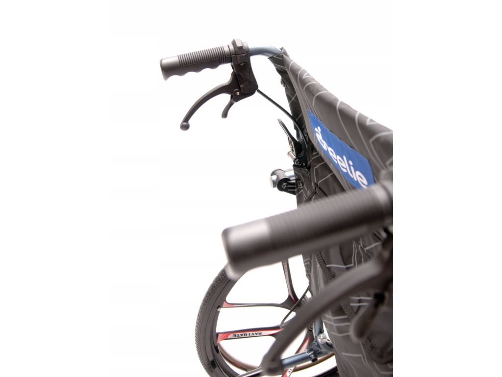 Sedák je vyrobený z odolného a ľahko čistiteľného materiálu, čo uľahčuje údržbu. Pohodlie a praktickosť zvyšujú vyklápacie podrúčky a opierky nôh, ktoré umožňujú jednoduché presadenie. Vozík je navyše vybavený brzdami pre sprievod, čo zvyšuje bezpečnosť počas prepravy.