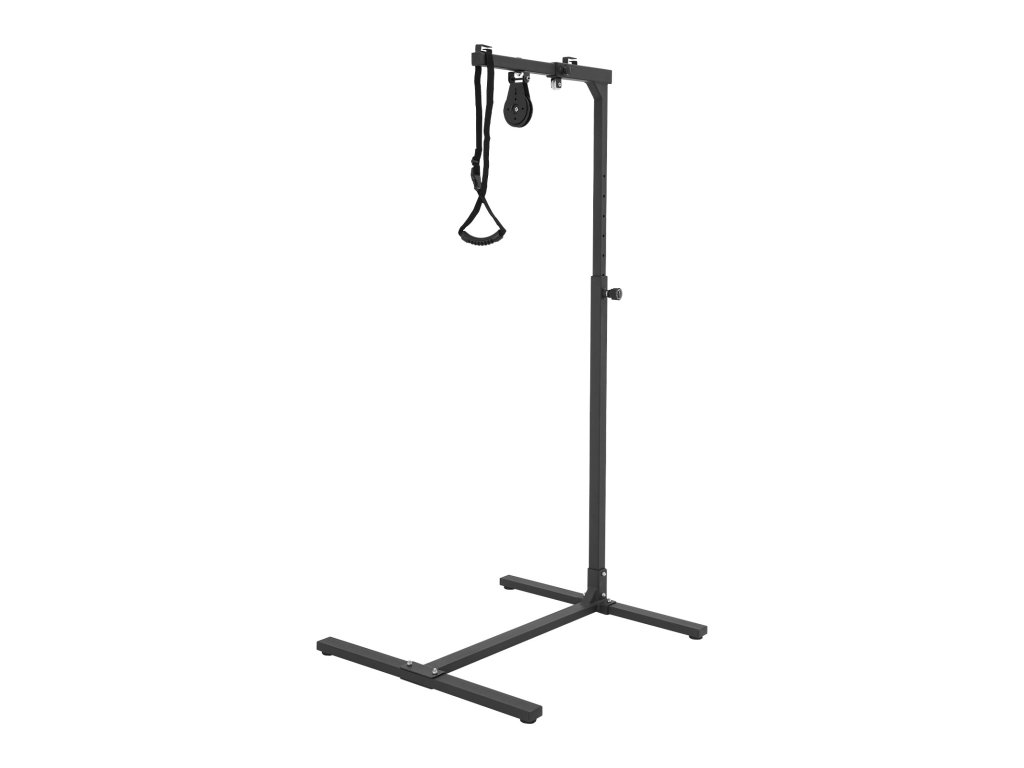 Stojan ponúka 9 úrovní výškového nastavenia (130–175 cm), vďaka čomu sa dokonale prispôsobí výške používateľa aj špecifickým rehabilitačným potrebám. Otočné koliesko s ložiskami umožňuje plynulé pohyby pri cvičení hornej časti tela, zatiaľ čo protišmykové nožičky zaručujú stabilitu na akomkoľvek povrchu.