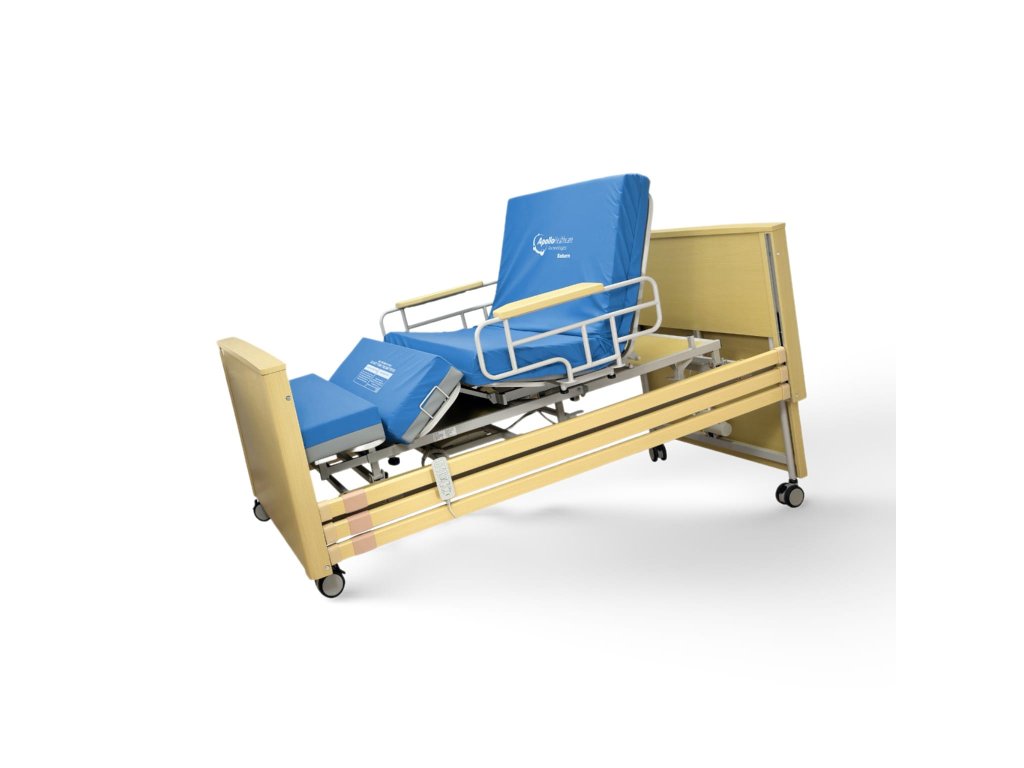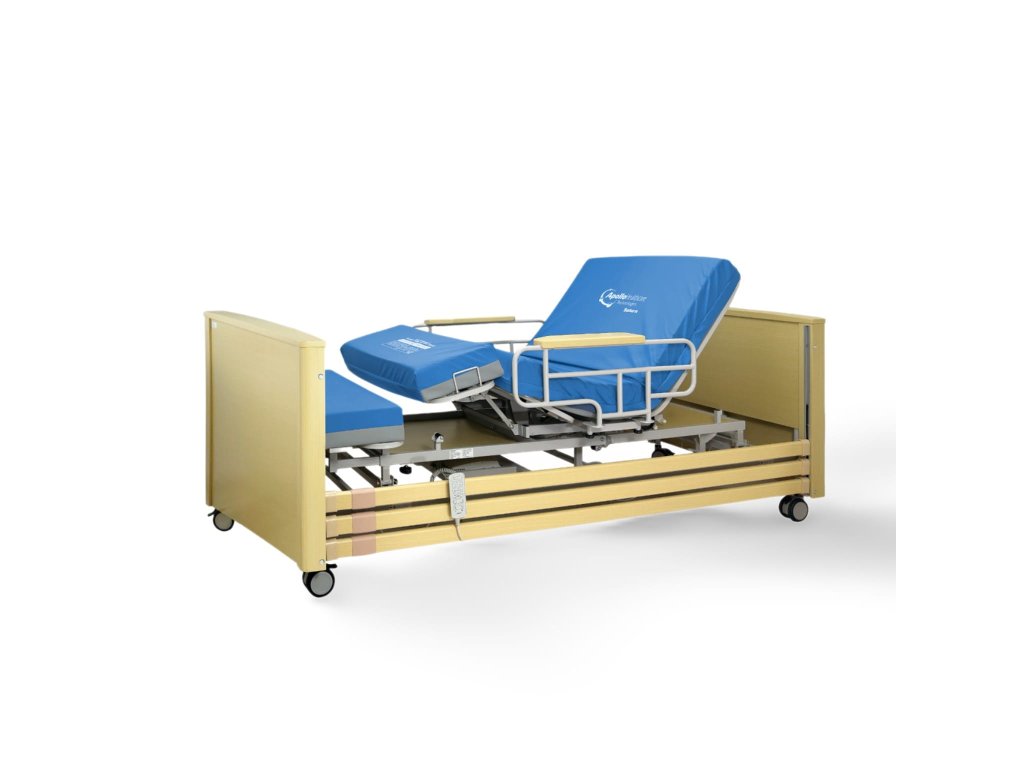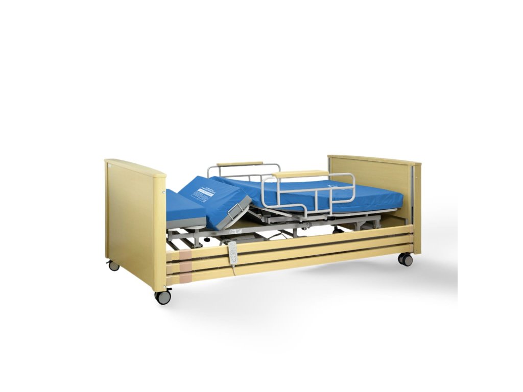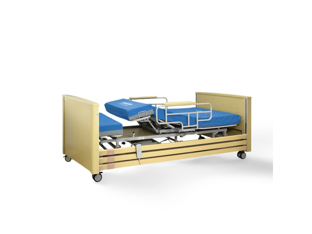 Robustné rehabilitačné lôžko s nosnosťou 180 kg, ľahkým predĺžením až na 210 cm, antidekubitným matracom a jedným intuitívnym ovládačom. Ponúka šetrnú zmenu polohy do sedu, kovovú konštrukciu pre ľahkú dezinfekciu a estetický domáci vzhľad. Otočný mechanizmus je možné nastaviť obojstranne podľa potreby.