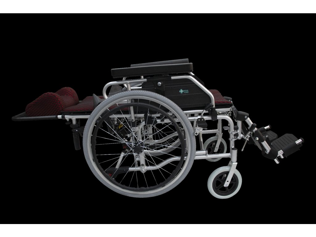 - Zdvíhacia podnožka: Výškovo nastaviteľná a zdvíhateľná do vodorovnej polohy pre prispôsobenie a podporu nôh.