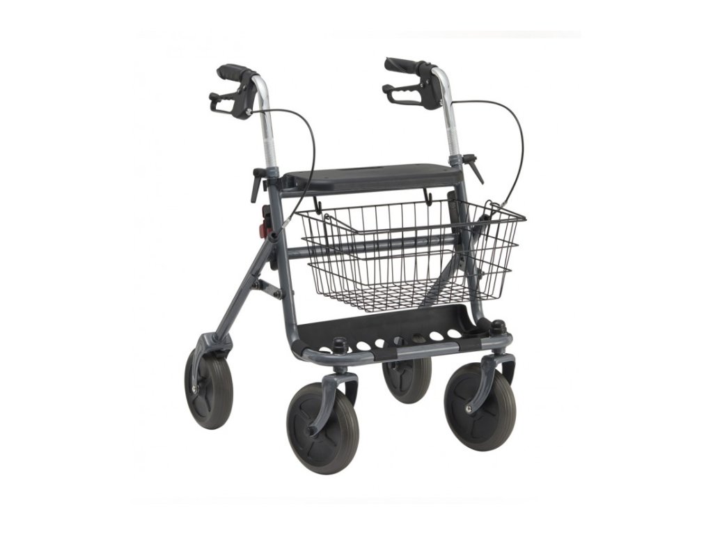 Štvorkolesové rehabilitačné chodítko s košíkom