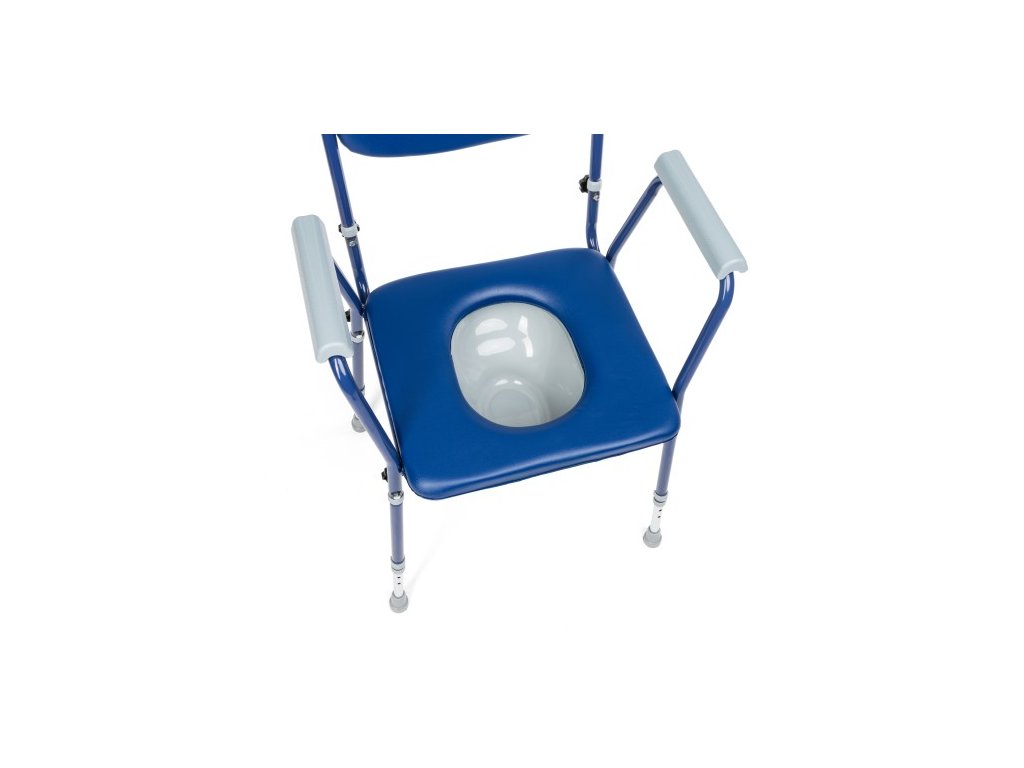 Praktická pomôcka pre osoby s obmedzenou pohyblivosťou. Uľahčuje hygienu vďaka ľahko vyberateľnému sanitárnemu zásobníku pod sedadlom. Oceľová konštrukcia s práškovým lakovaním, výškovo nastaviteľné nohy s protišmykovými koncovkami a pohodlné čalúnené sedadlo s operadlom zaisťujú komfort aj bezpečnosť.
