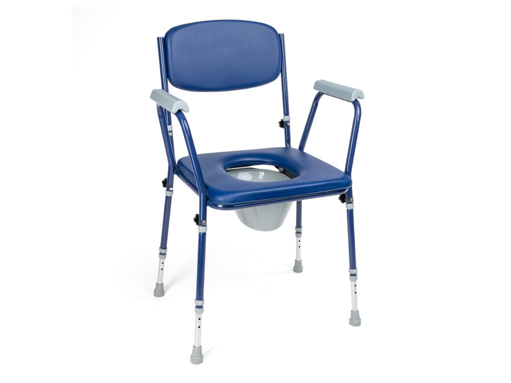 Čalúnená toaletná stolička BLUE-TIM je pomôcka, ktorá uľahčuje používateľovi vykonávanie hygienických úkonov. Odporúča sa pre osoby s obmedzenou schopnosťou samostatného pohybu, s dysfunkciami a pohybovými obmedzeniami, ako aj pre osoby, ktoré stratili schopnosť samostatne si sadnúť a vstať. Stolička plní toaletnú funkciu vďaka vybaveniu sanitárnym zásobníkom umiestneným pod sedadlom. Umožňuje jednoduchšie vykonávanie fyziologických a ošetrovateľských úkonov.