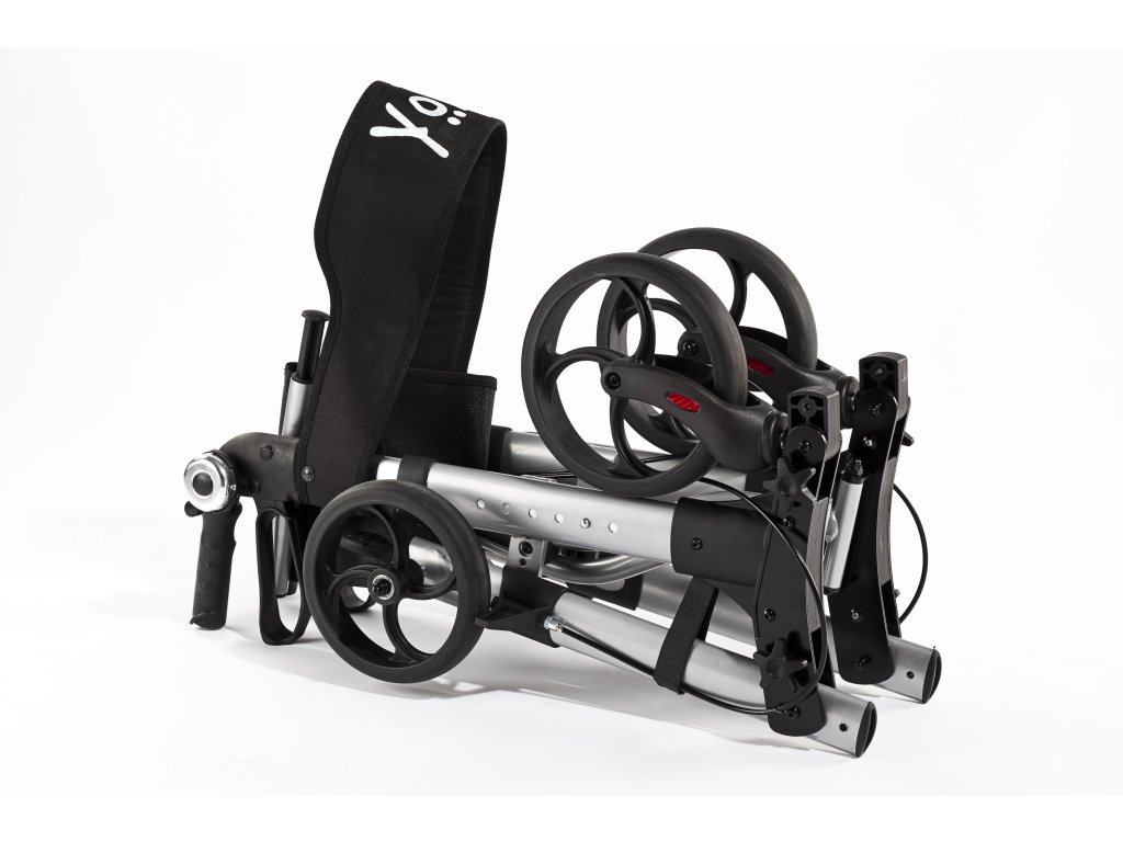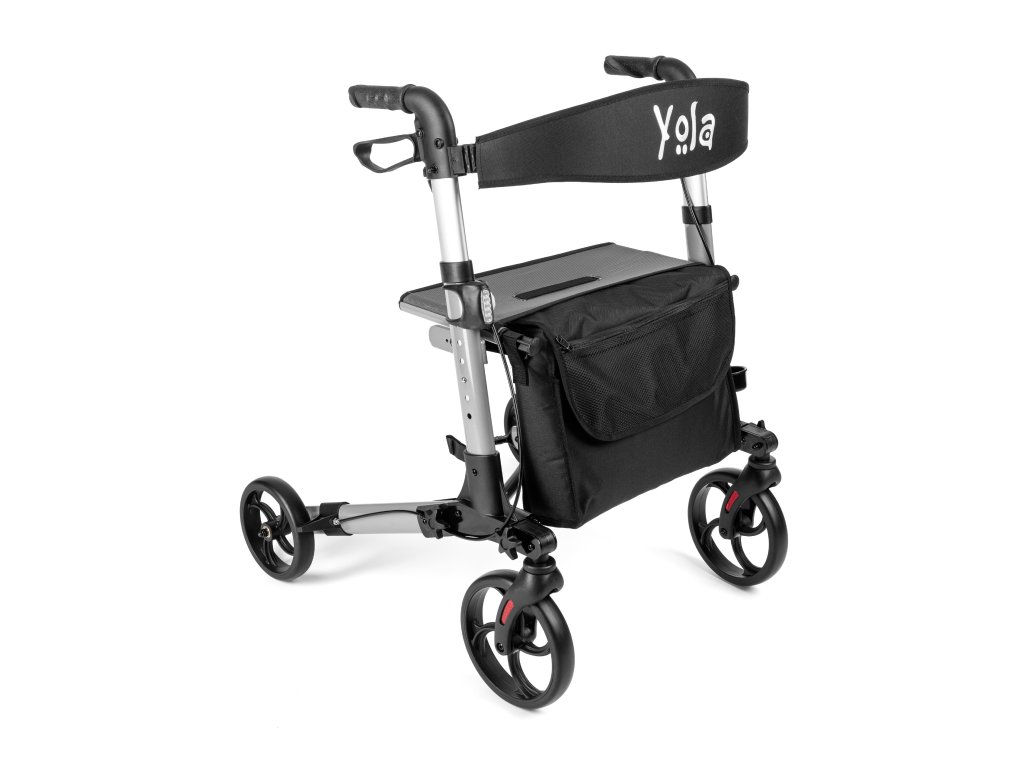 Štvorkolesové chodítko Yola je vybavený kolesami s úzkym prierezom a priemerom 8 palcov, čo zaisťuje ľahkú manipuláciu a jazdu po rôznych povrchoch. Pre ľahkú prepravu je možné chodítko zložiť do kompaktnej jednotky.