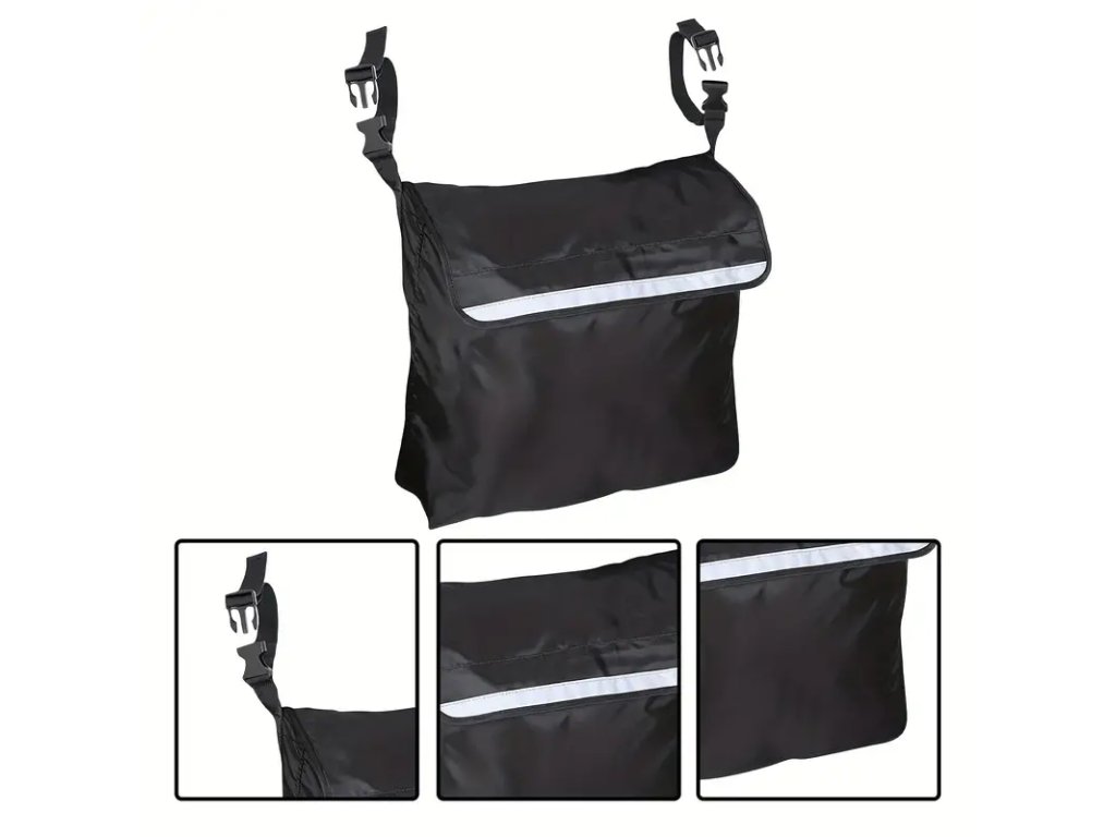 Nastaviteľný batoh pre invalidný vozík – odolná čierna úložná taška pre elektrické vozíky. Nepremokavé a praktické s mnohými vreckami pre efektívnu organizáciu.